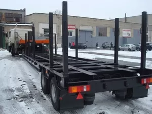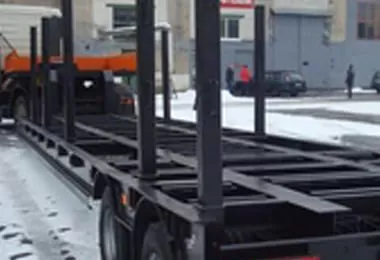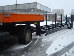 Стойки на грузовой платформе – для перевозки труб. По заказу можем изготавливать борта и/или тент на грузовой платформе, а также вариации трапов: гидравлические одинарного или двойного сложения, механические двойного сложения.